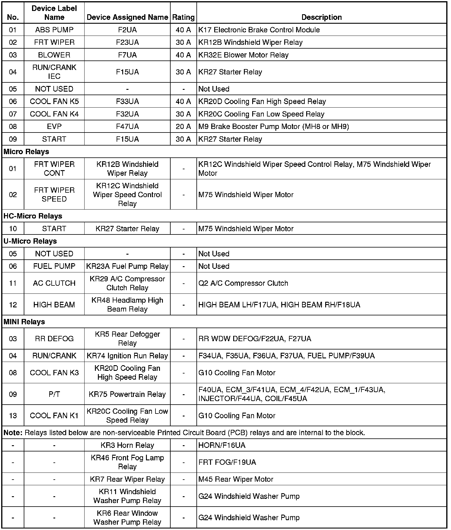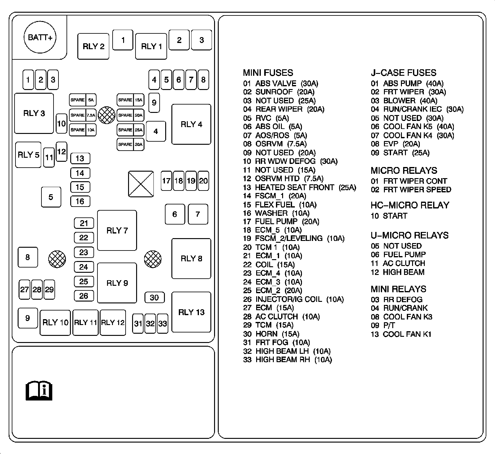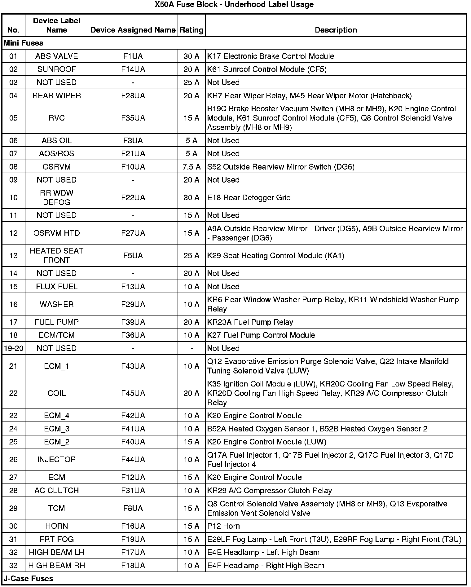 X50A Fuse Block - Underhood Label