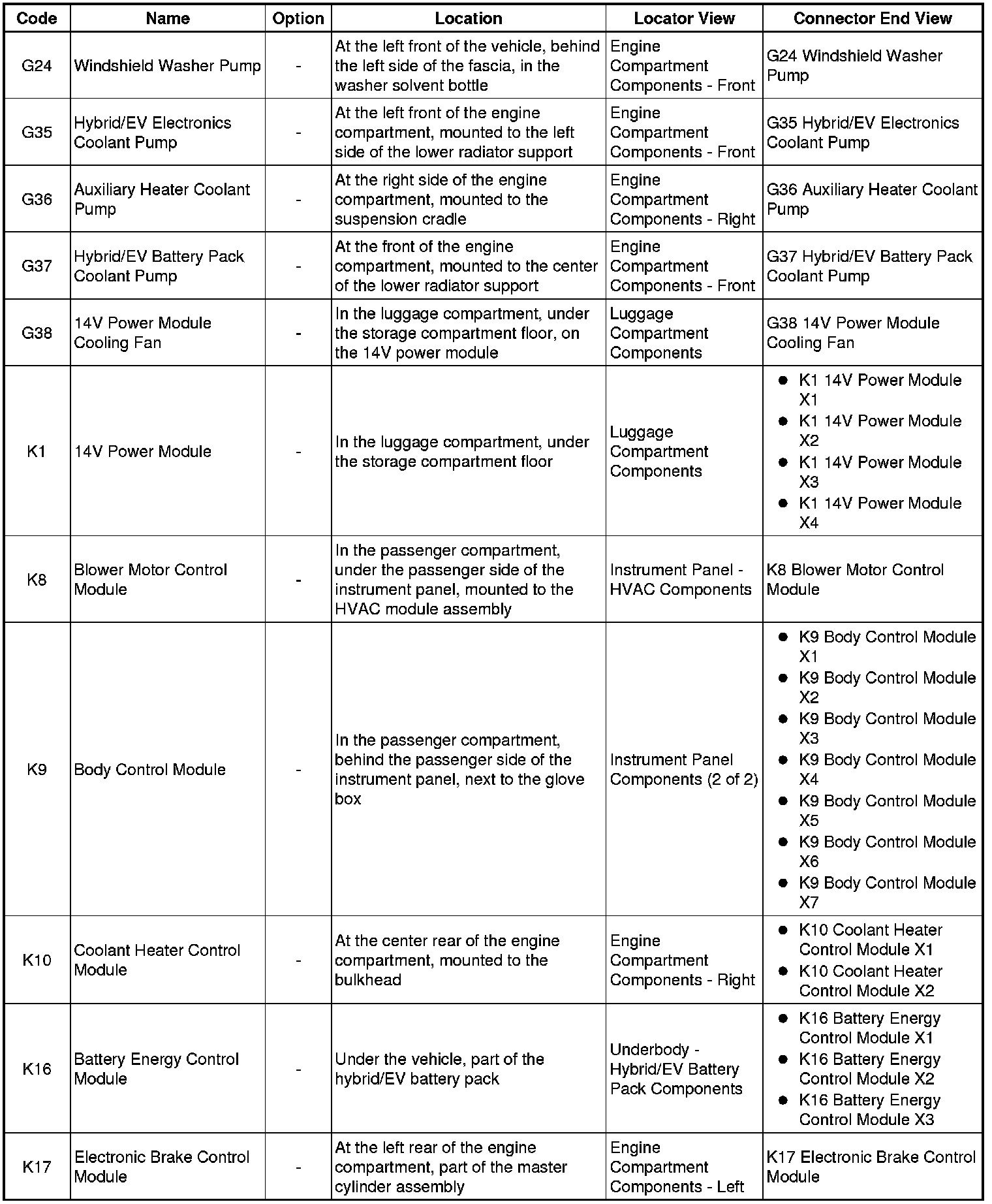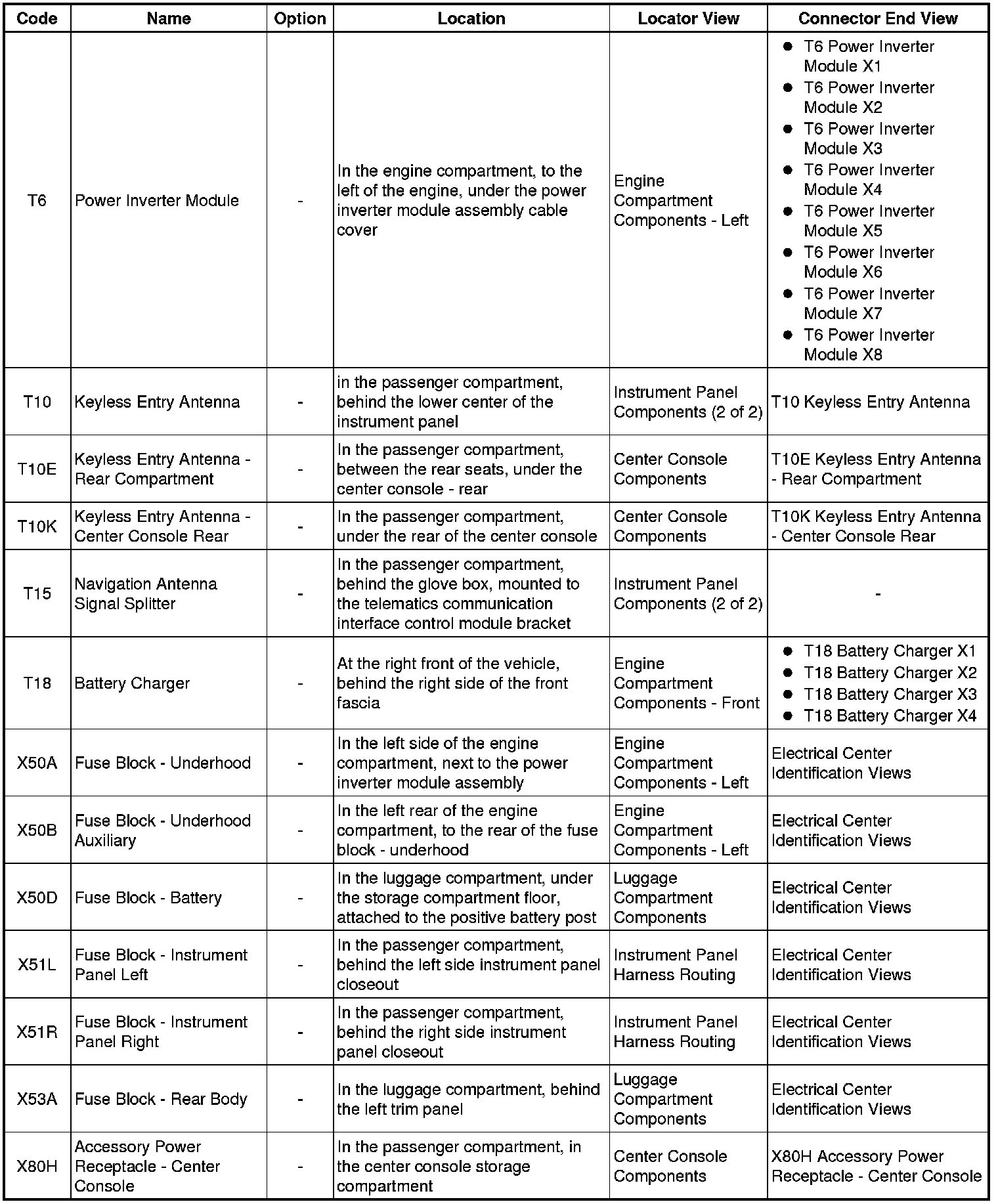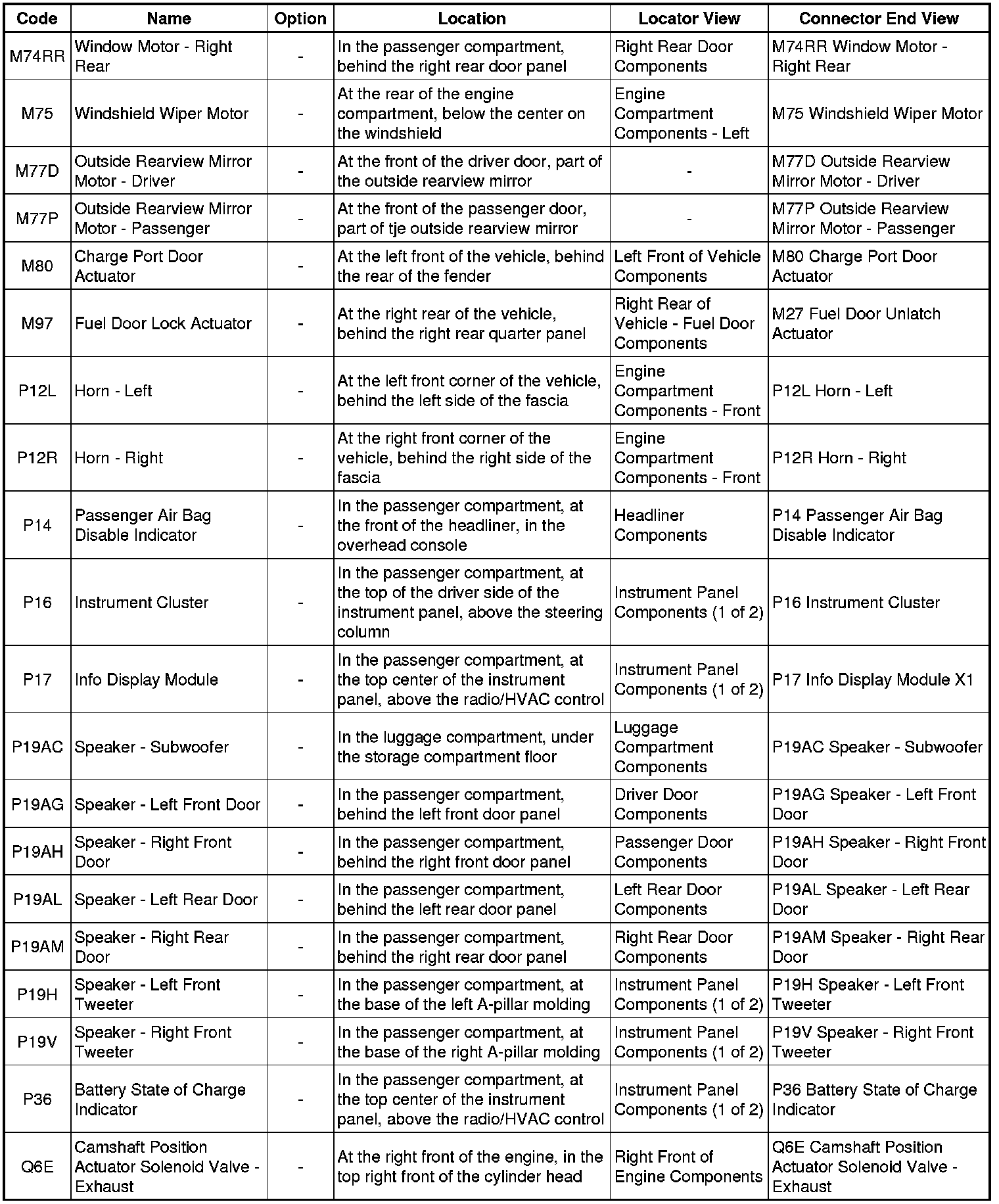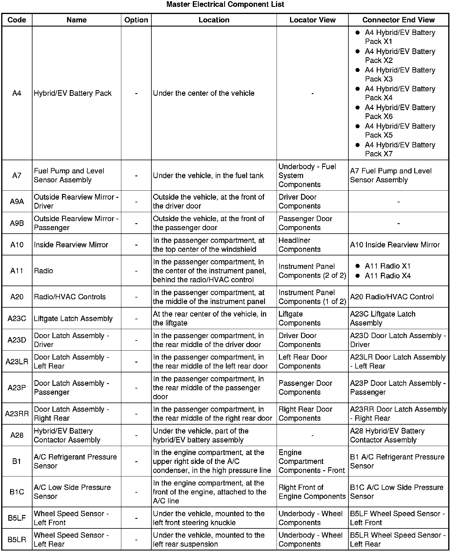 Master Electrical Component List