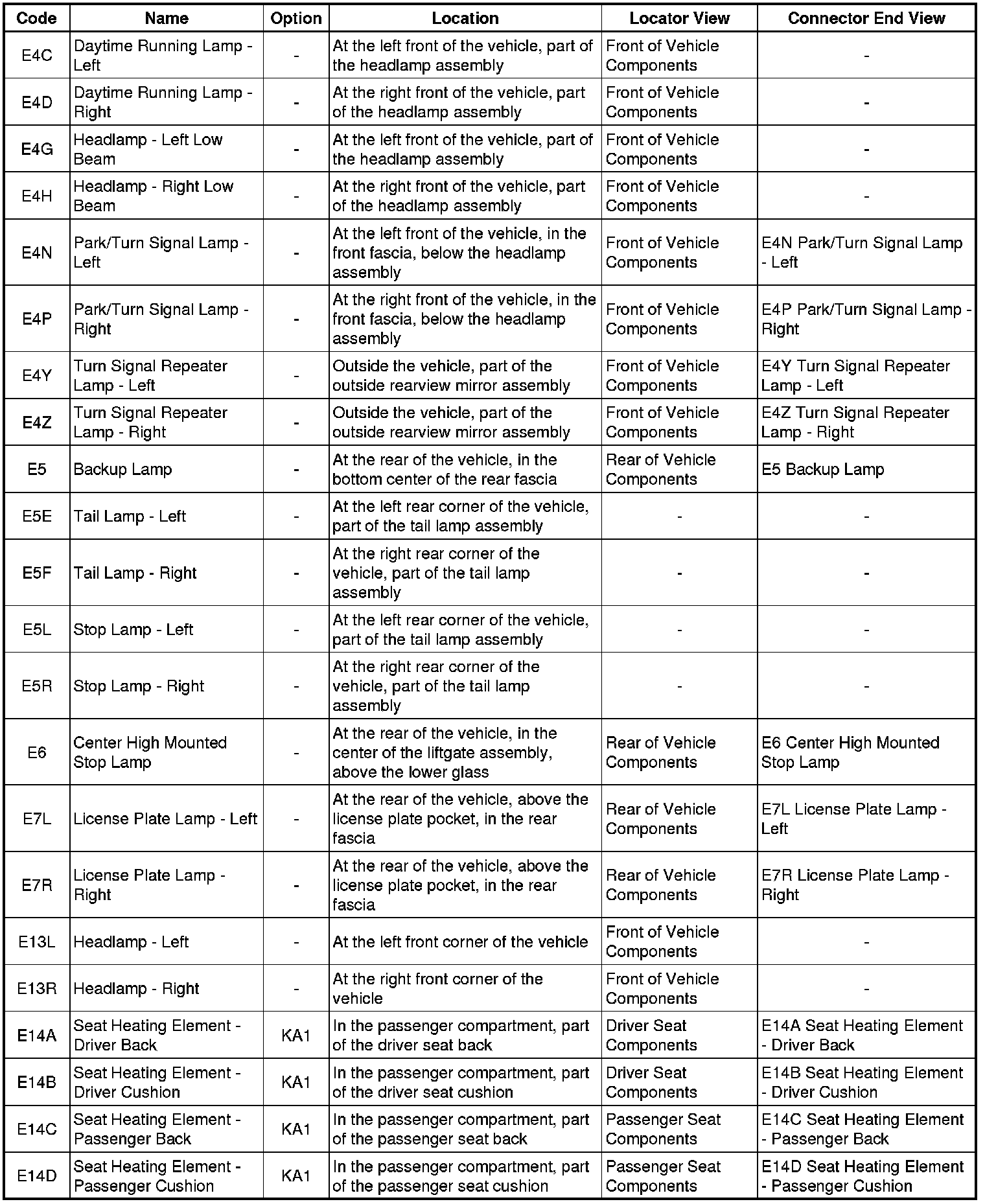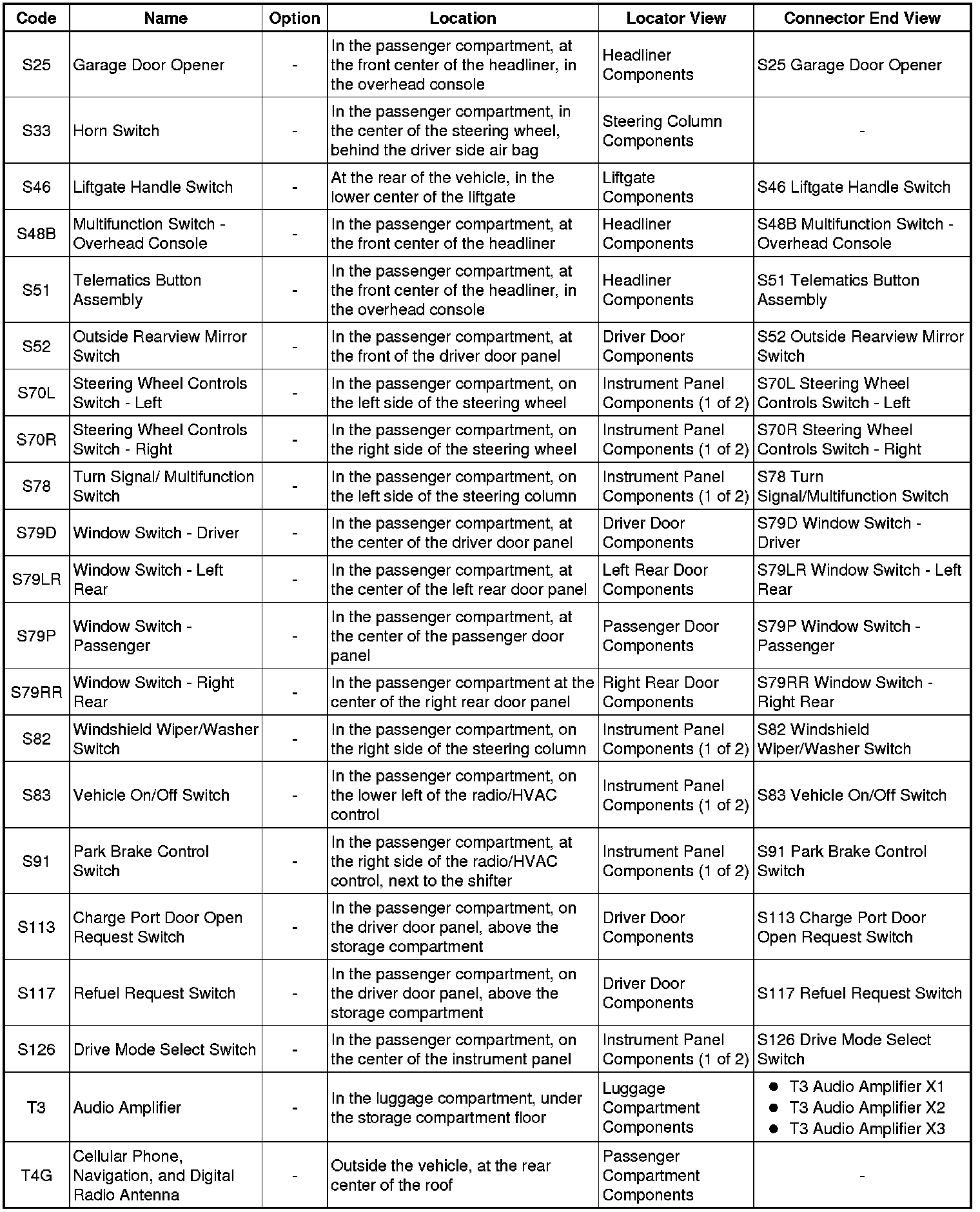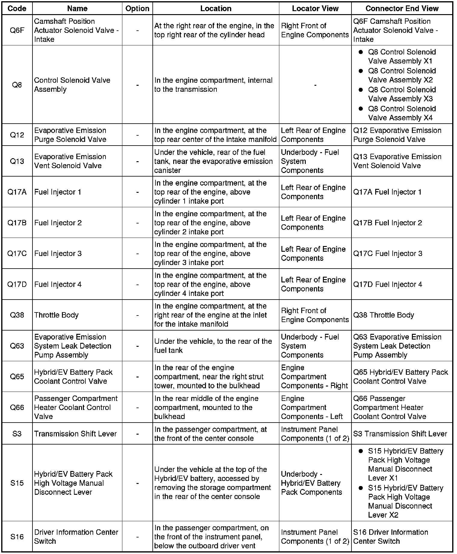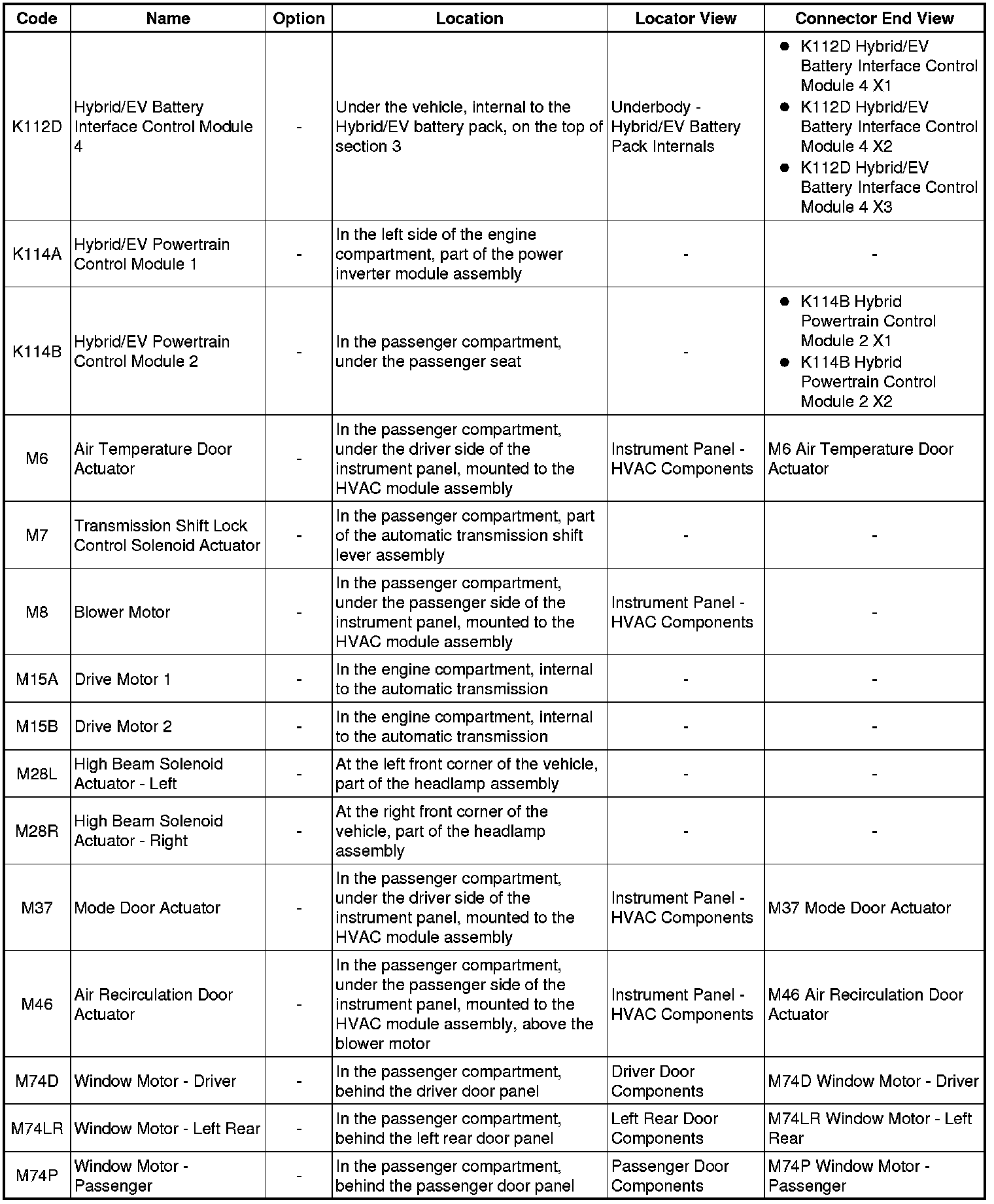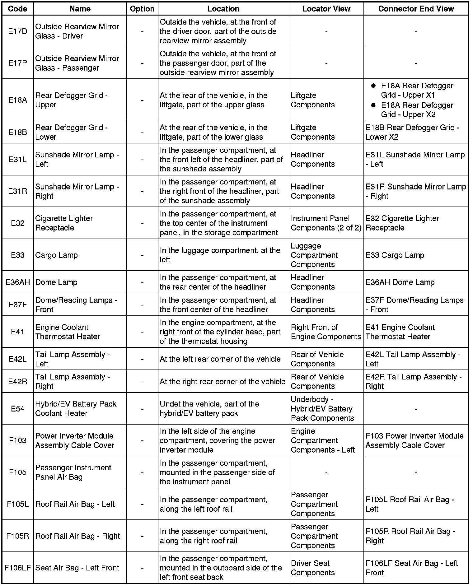 Master Electrical Component List