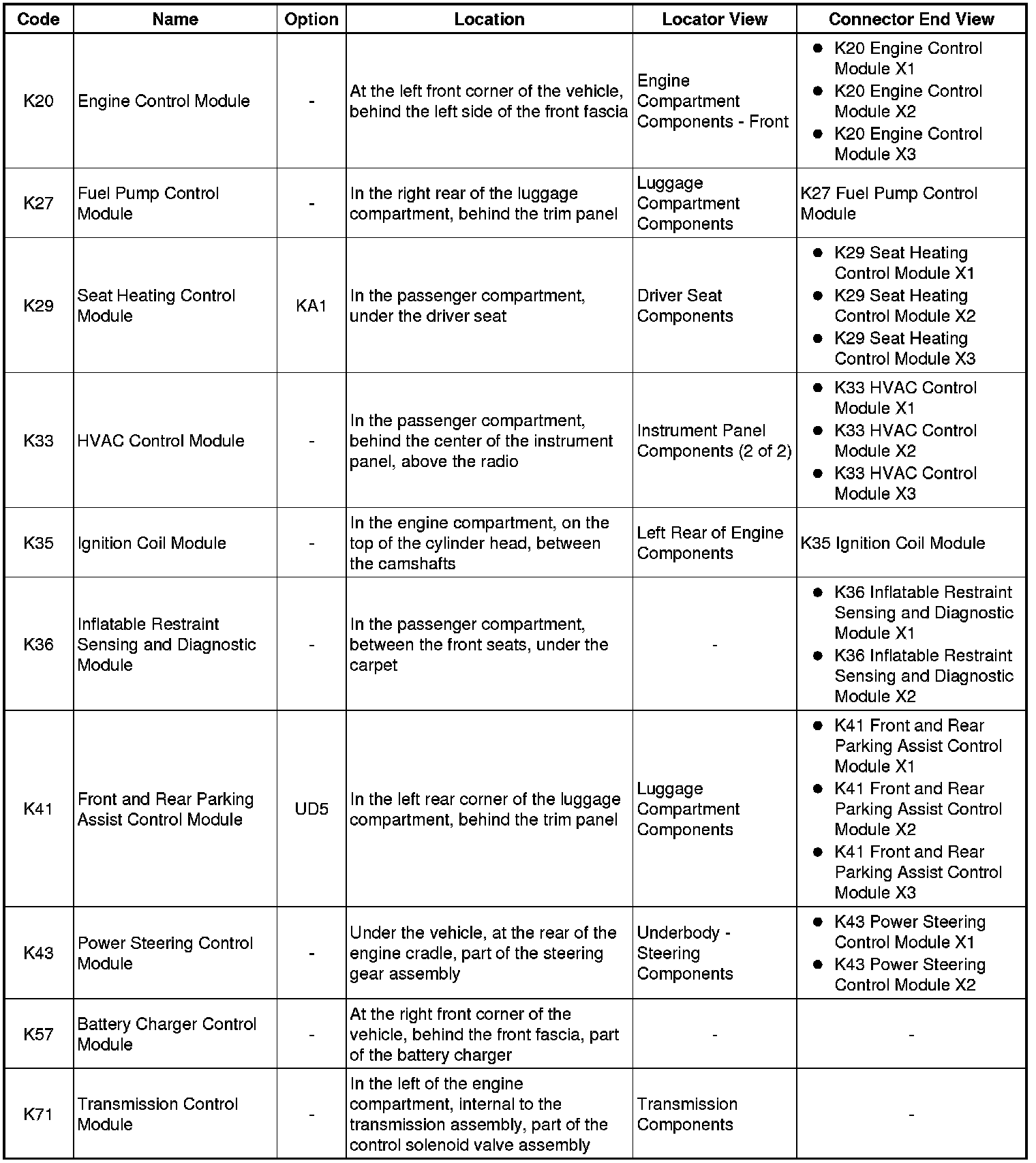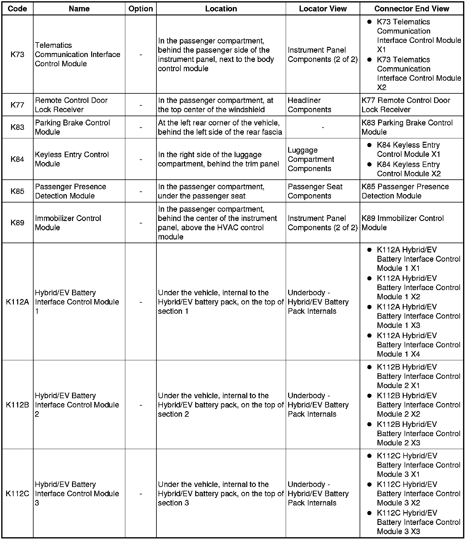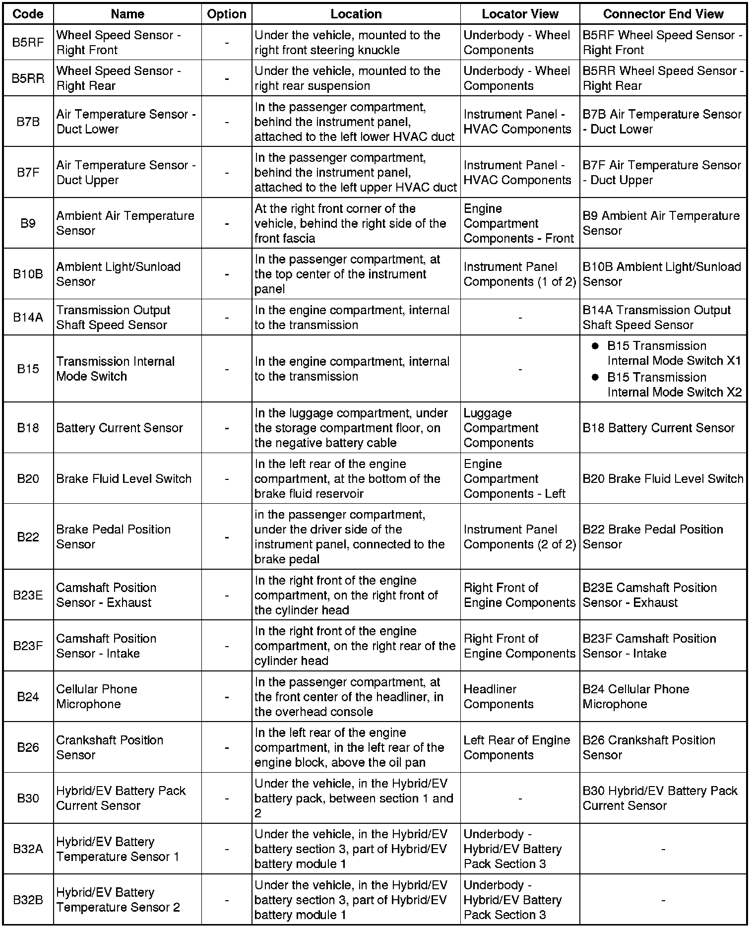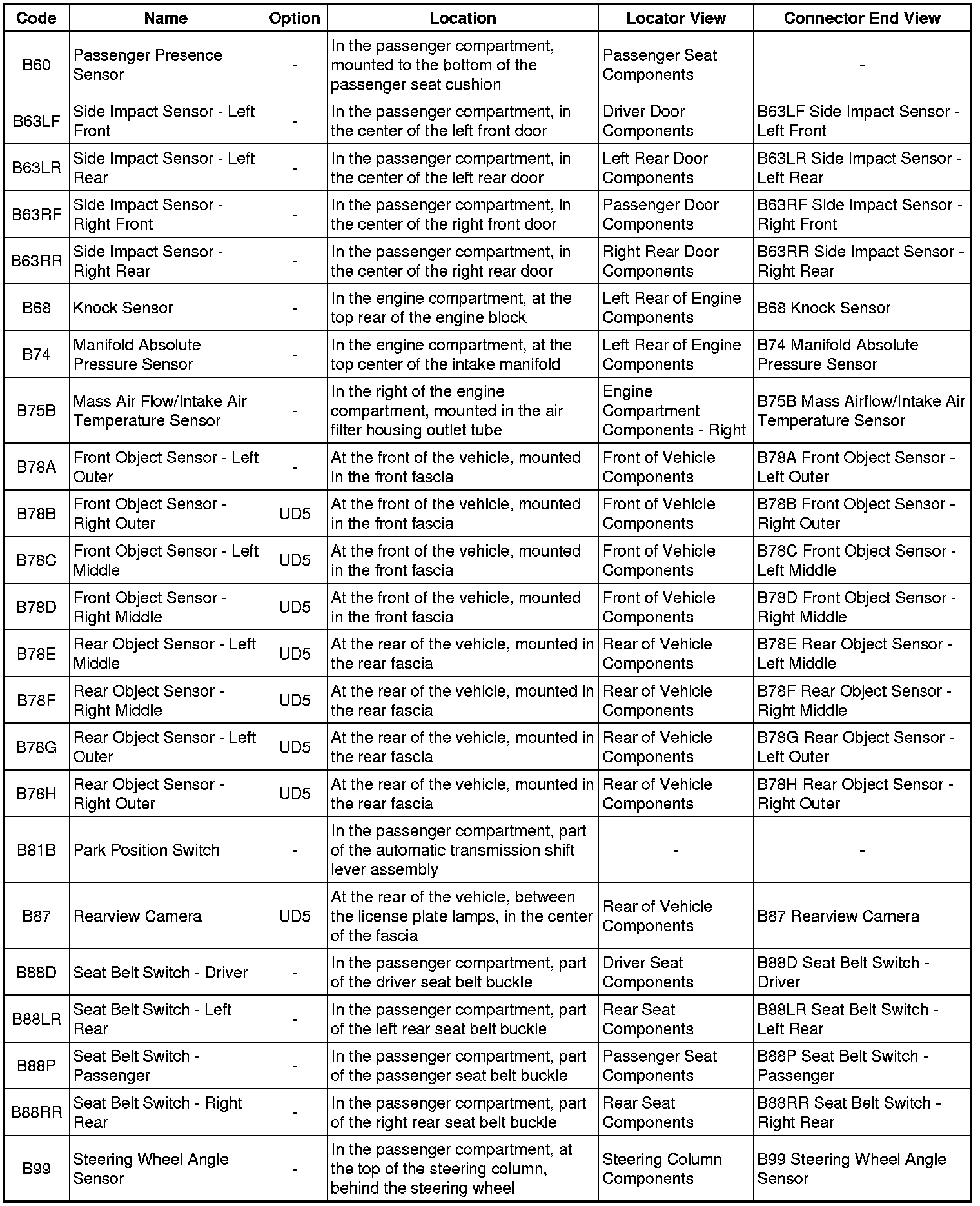 Master Electrical Component List