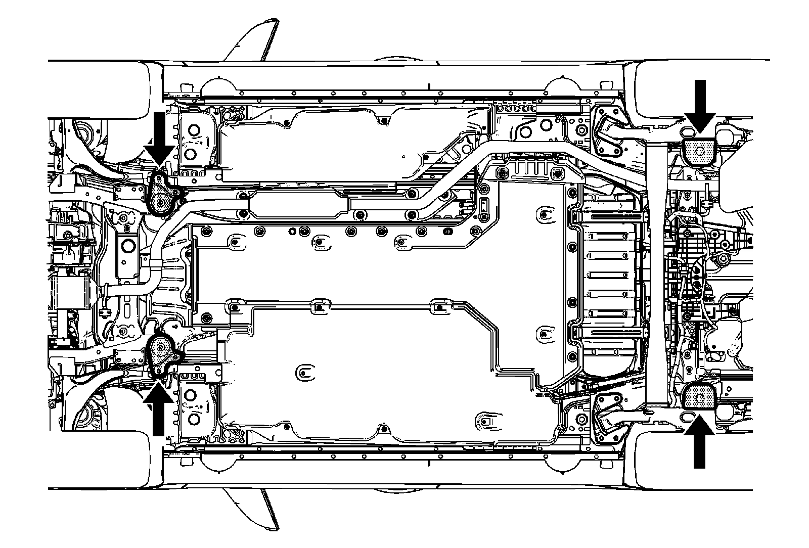 * Perform the vehicle lifting or jacking procedure only at the identified lift points. DO NOT allow the lifting equipment or jacking equipment to contact any other vehicle components.