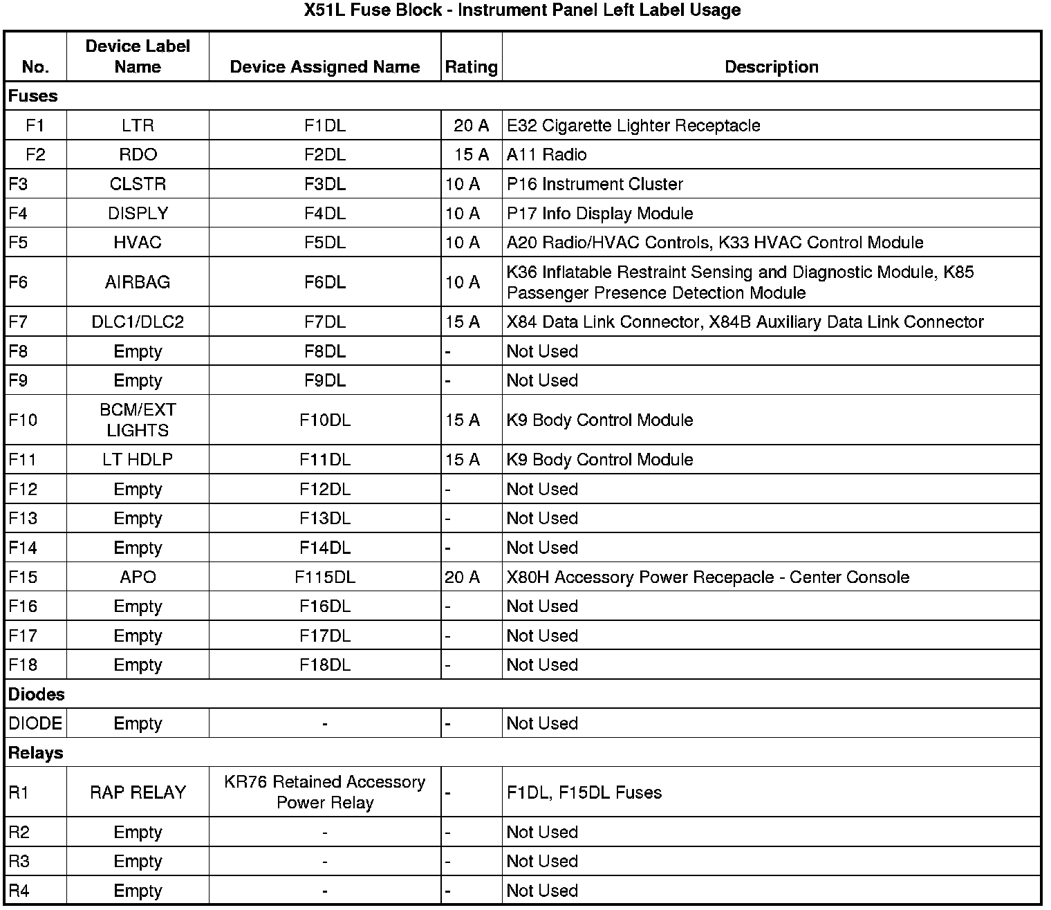 X51L Fuse Block - Instrument Panel Left Label