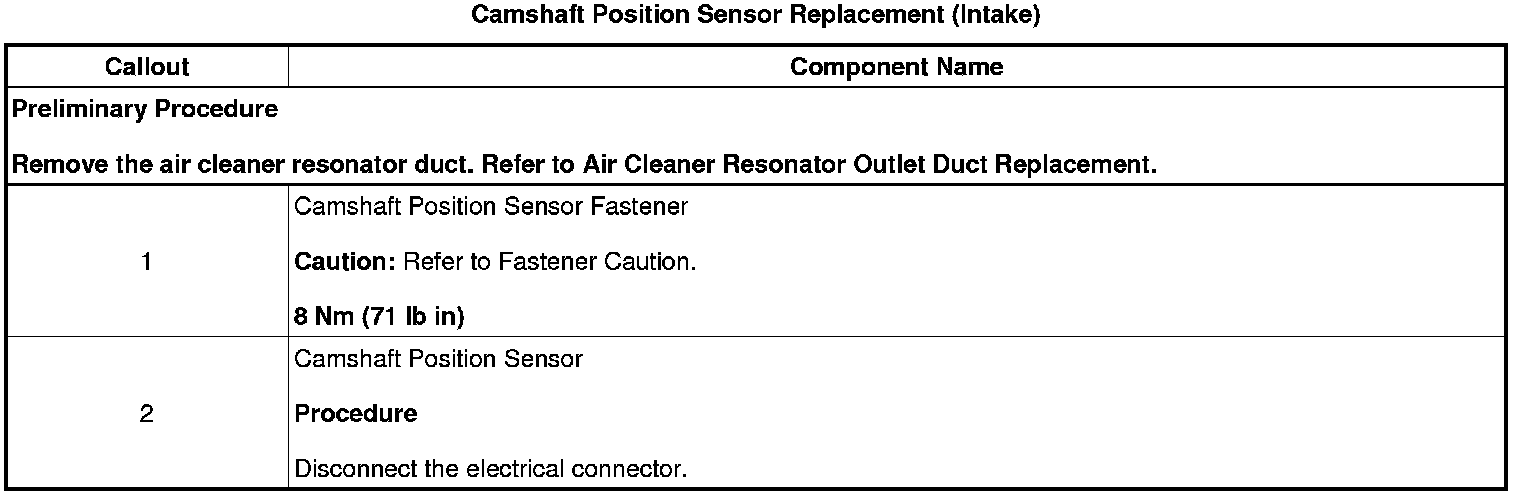 Camshaft Position Sensor Replacement (Intake)