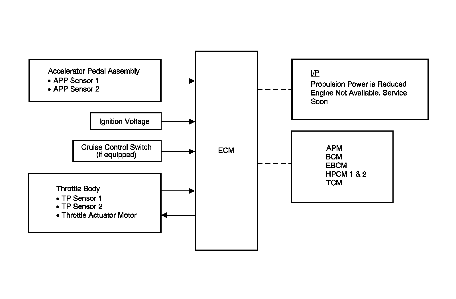 * Limited throttle mode-The ECM will continue to use the accelerator pedal for propulsion control, however, the propulsion power is reduced.