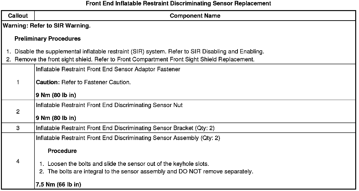 Front End Inflatable Restraint Discriminating Sensor Replacement