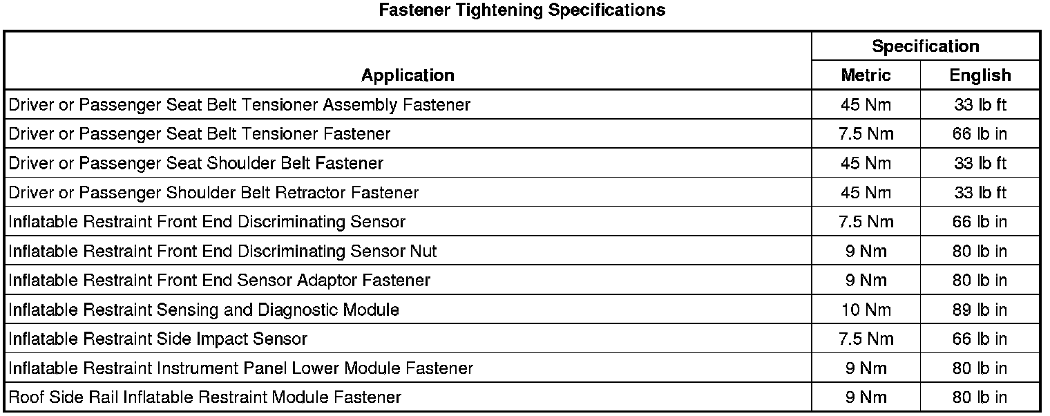 Fastener Tightening Specifications