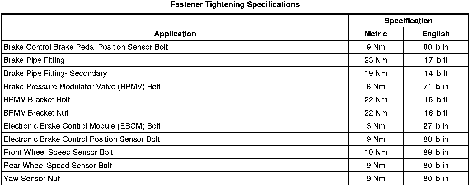 Fastener Tightening Specifications