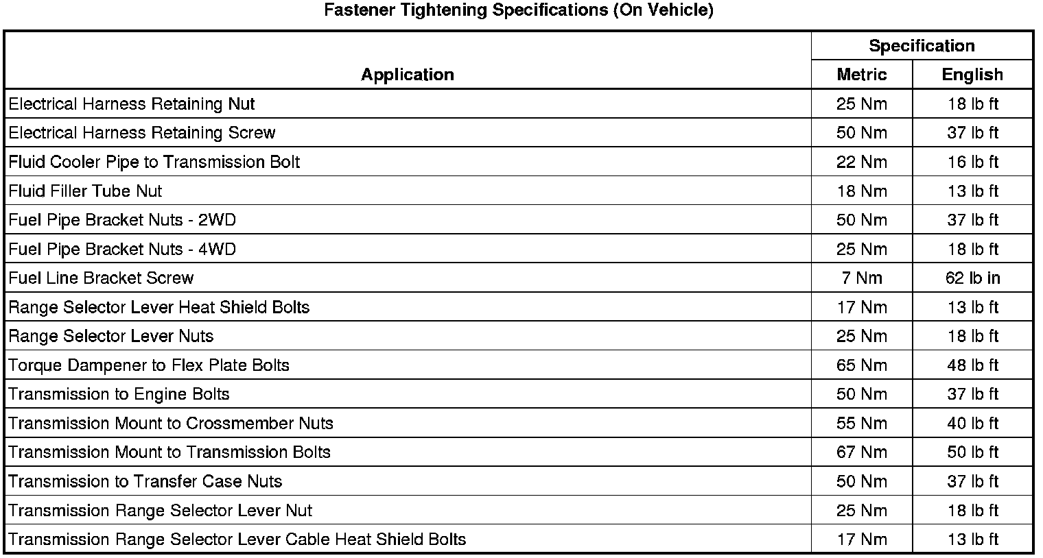 Fastener Tightening Specifications (On Vehicle)