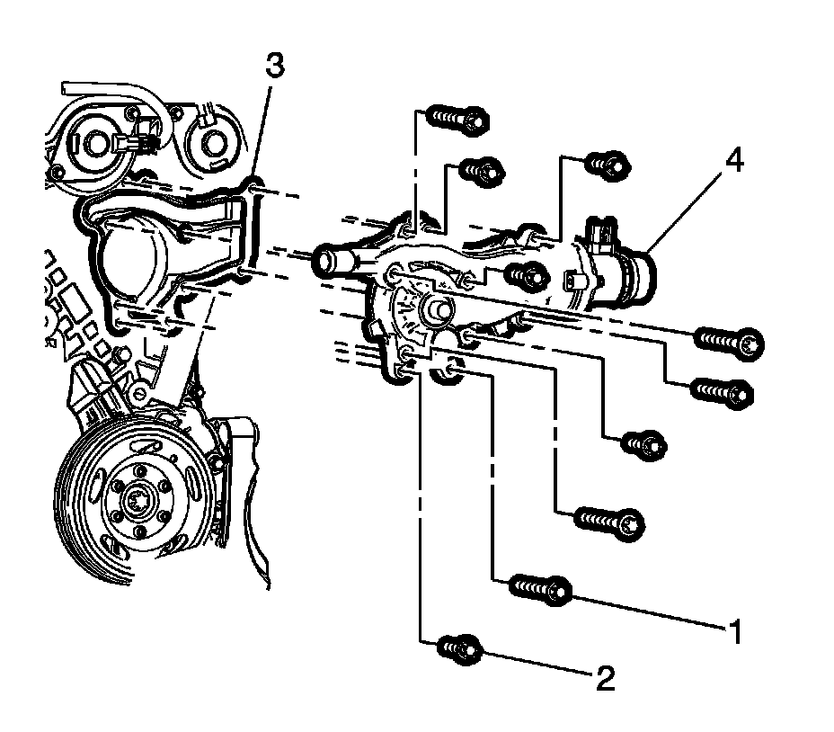 (4) and a NEW water pump gasket (3).