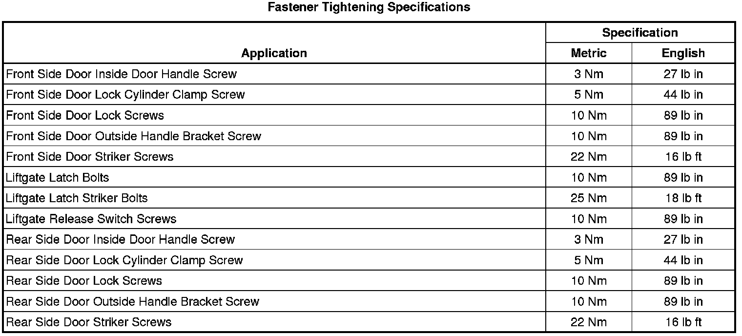 Fastener Tightening Specifications