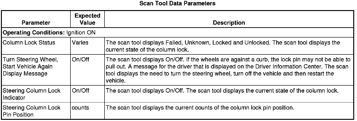 Steering Column Lock Control Module Scan Tool Information