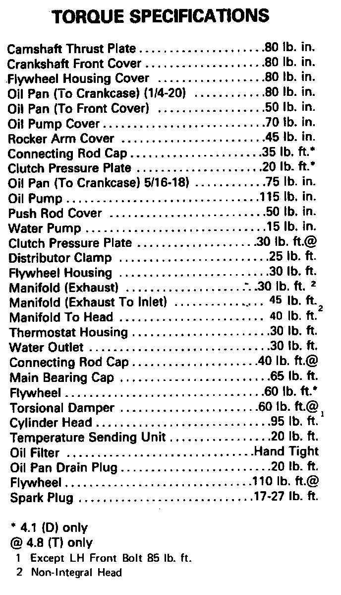Torque Specifications: