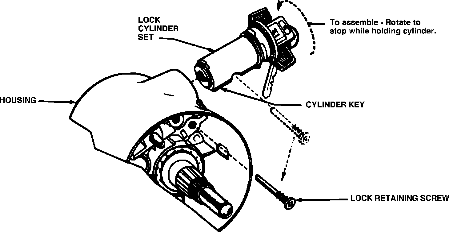 5. Install lock cylinder retaining screw. Torque screw to 40 lb in for standard columns, or 22 lb in for adjustable columns.