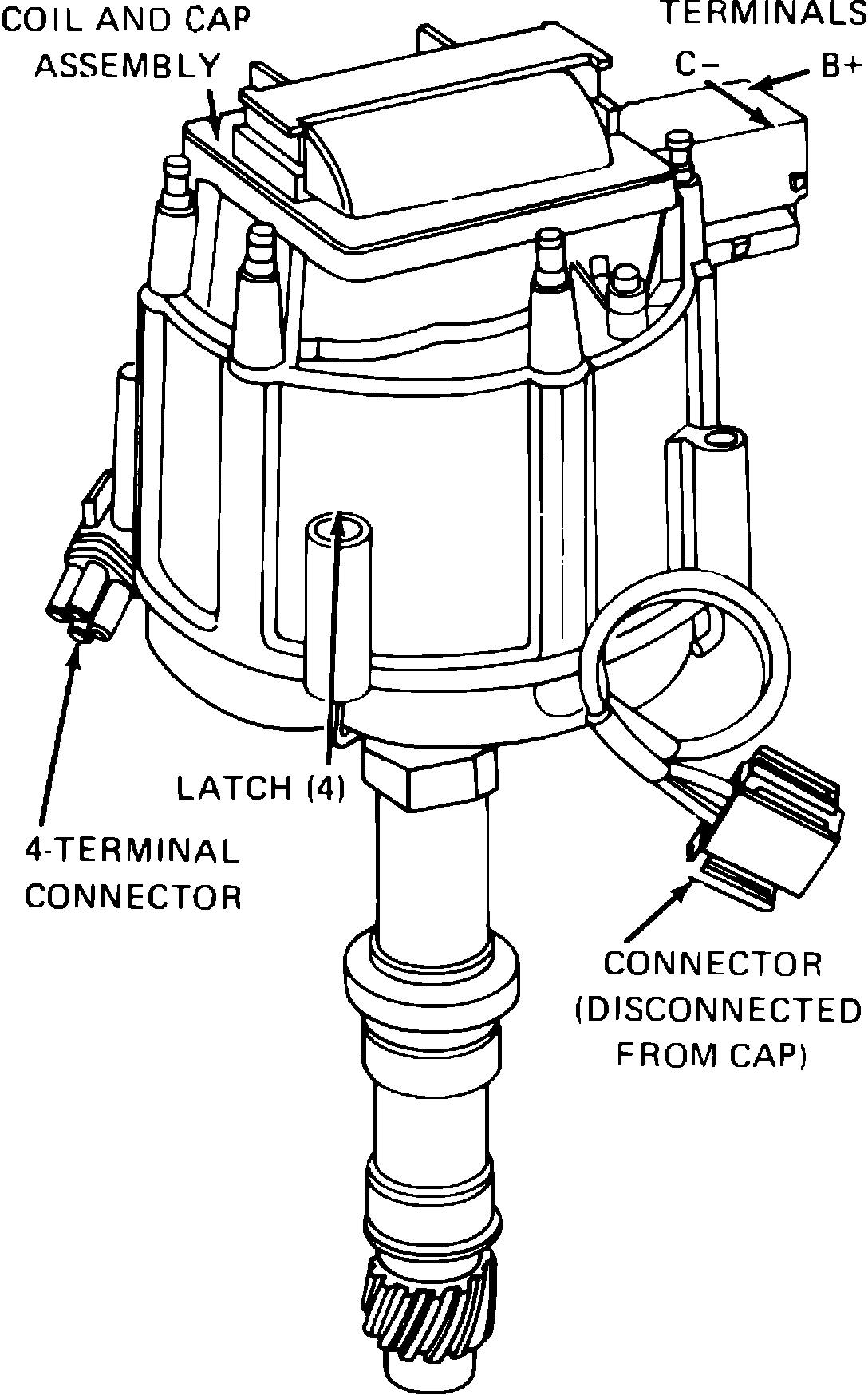 NOTE: For further diagnosis, refer to Computers and Control Systems.Fig. 1 HEI-EST Distributor with internal coil. Models with 6 & 8 cylinder engine: