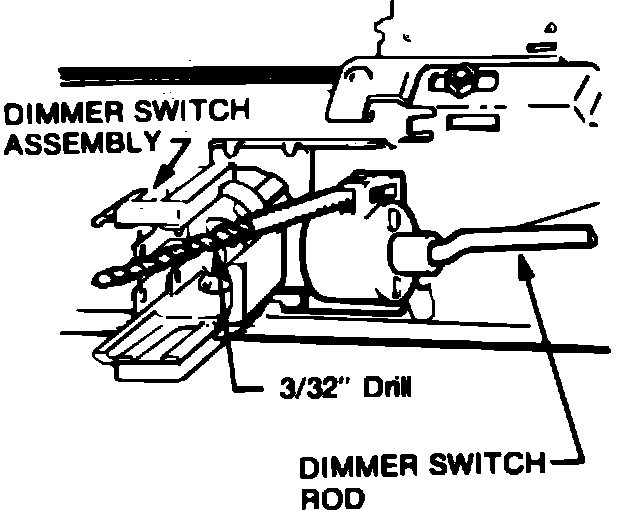 5. Remove dimmer switch retaining screws and the switch. Tape actuator rod to column and separate switch from rod.