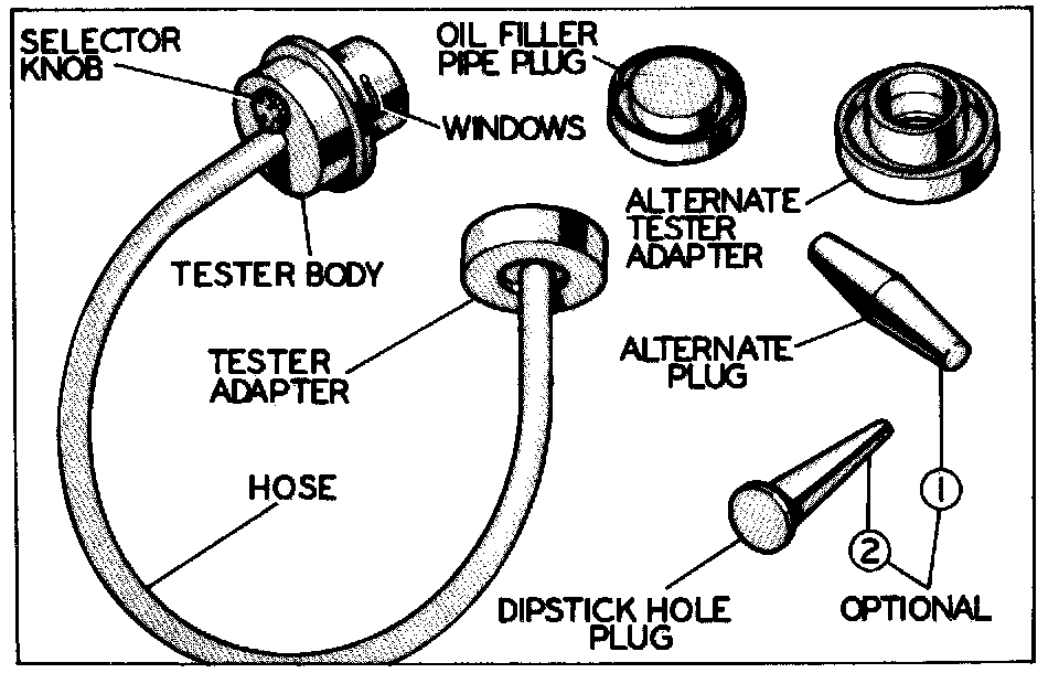 NOTE: This test uses the AC positive crankcase ventilation tester--Fig 45--which is operated by the engine vacuum through the oil filler opening.