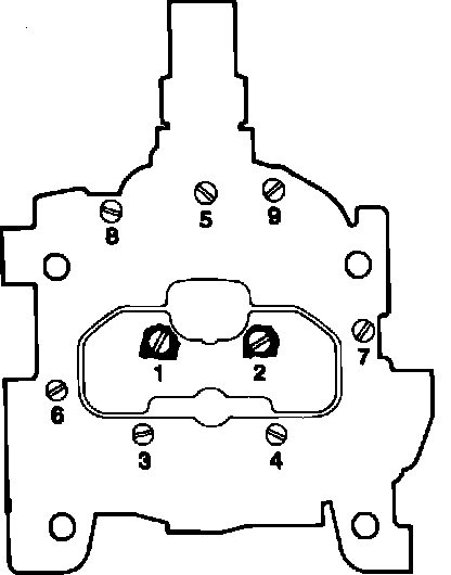 43. Install and tighten in sequence, Fig 4, air horn to float bowl attaching screws.