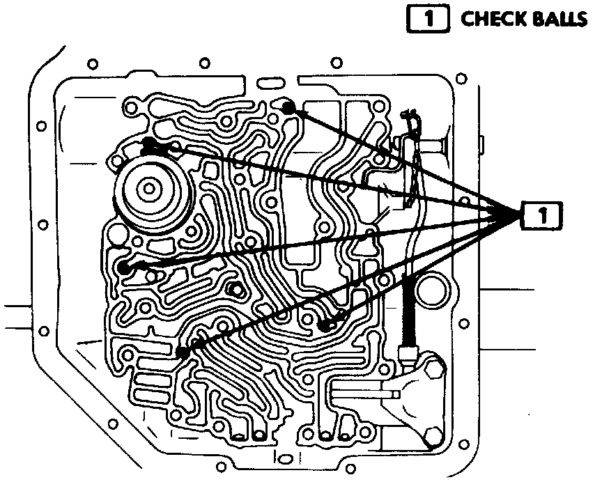 32. Install valve body spacer plate to case gasket, valve body spacer plate and spacer plate to valve body gasket. Install spacer support plate and torque bolts to 13 ft lbs. Install auxiliary valve body and torque bolts to 13 ft lbs. Install valve body and connect manual control valve link to range selector inner lever, then install manual shaft retaining clip and torque bolts to 13 ft lbs, leaving detent roller and spring assembly bolt loose. Do not touch sleeves when handling valve body as retainer pins may fall into transmission. Install detent roller and spring assembly to valve body and install detent control valve wire to detent valve actuating lever, then attach lever to valve body. Install solenoid and connect wires then install governor pressure switch if removed.