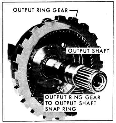 4. Assemble output ring gear on output shaft. Install new snap ring on shaft.