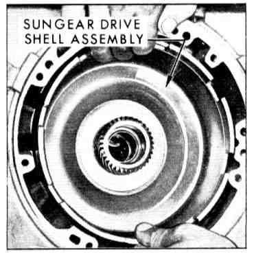 10. Install sun gear thrust washer on roller clutch inner race. Install sun gear drive shell assembly.