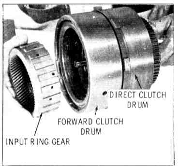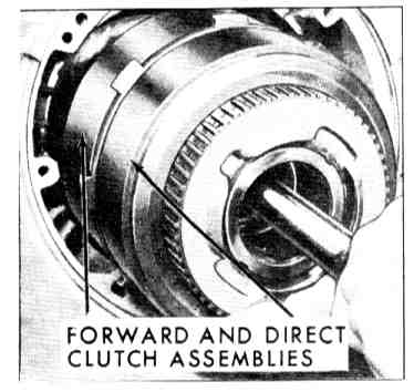 15. Install direct and forward clutch assemblies in case. Align plates with splines and insert till tangs are 1/8 inch below notches in drive shell.
