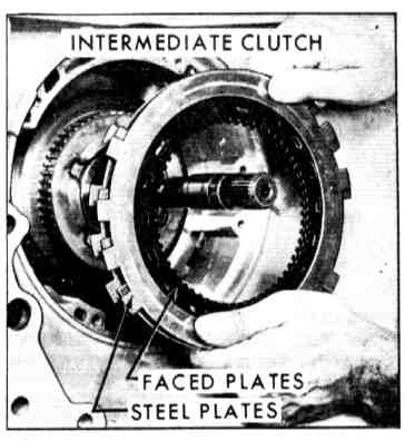 17. Install intermediate clutch pressure plate, clutch pack and cushion spring.