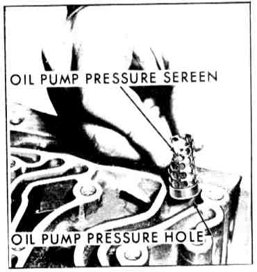 27. Install oil pump pressure screen, ring end first.