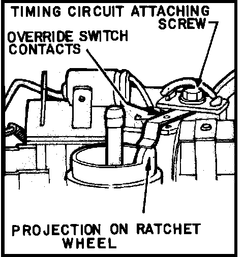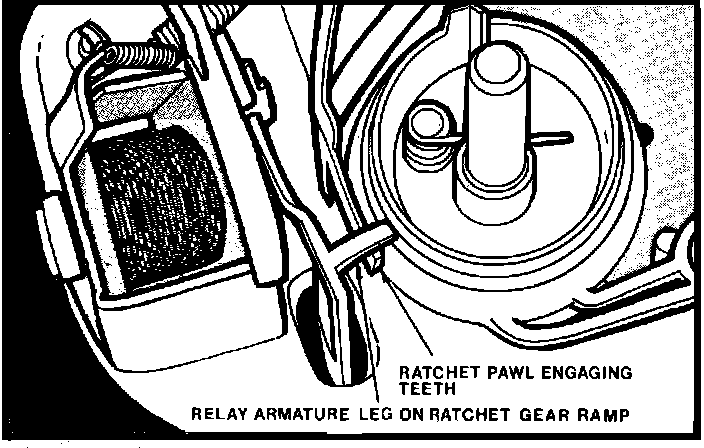 4. If ratchet gear is properly positioned and the switch contacts are closed, torque mounting screw to 14 inch lbs., and adjust contact gap to .025 inch.