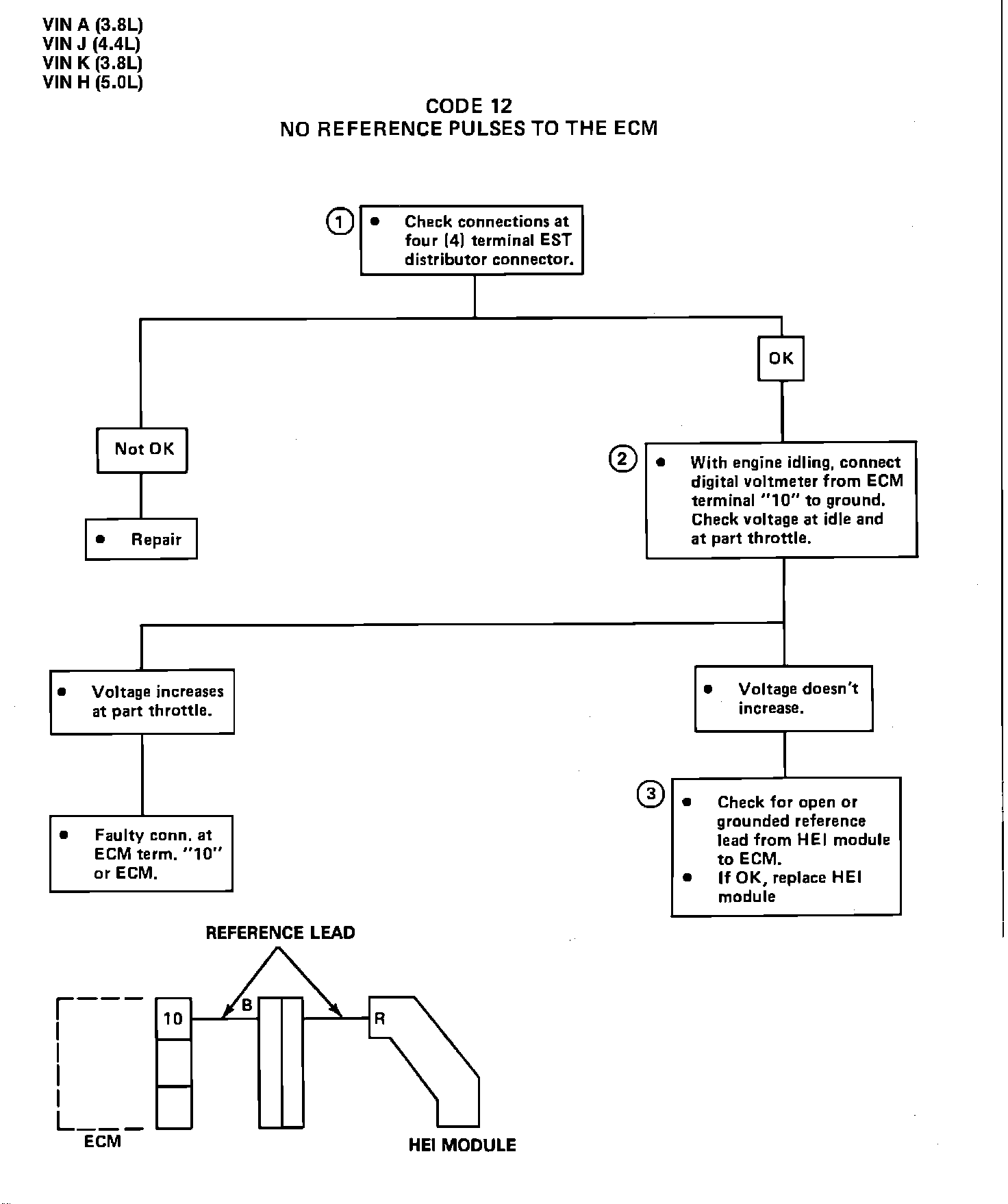 CODE 12 - NO REFERENCE PULSES TO THE ECM