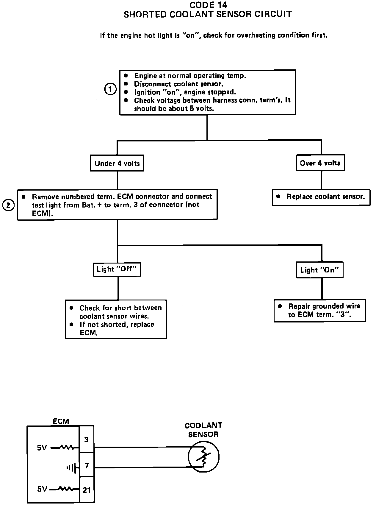 Wiring Diagram for Code 14 - Coolant Sensor Shorted: