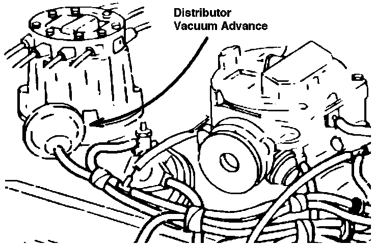 8. Remove test equipment and reconnect vacuum line to distributor advance.
