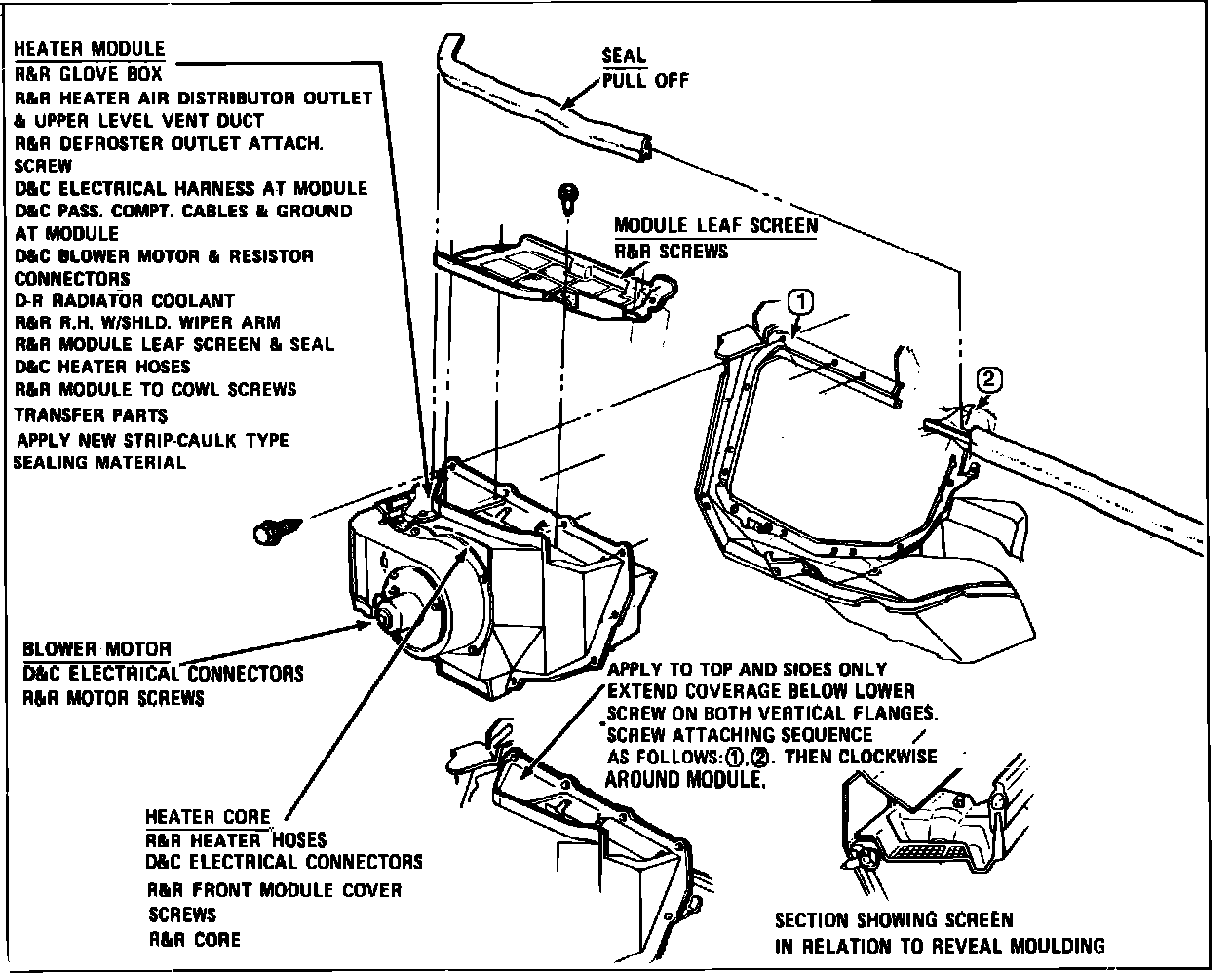 Fig. 21 Blower motor & heater core. Caballero & El Camino with A/C:
