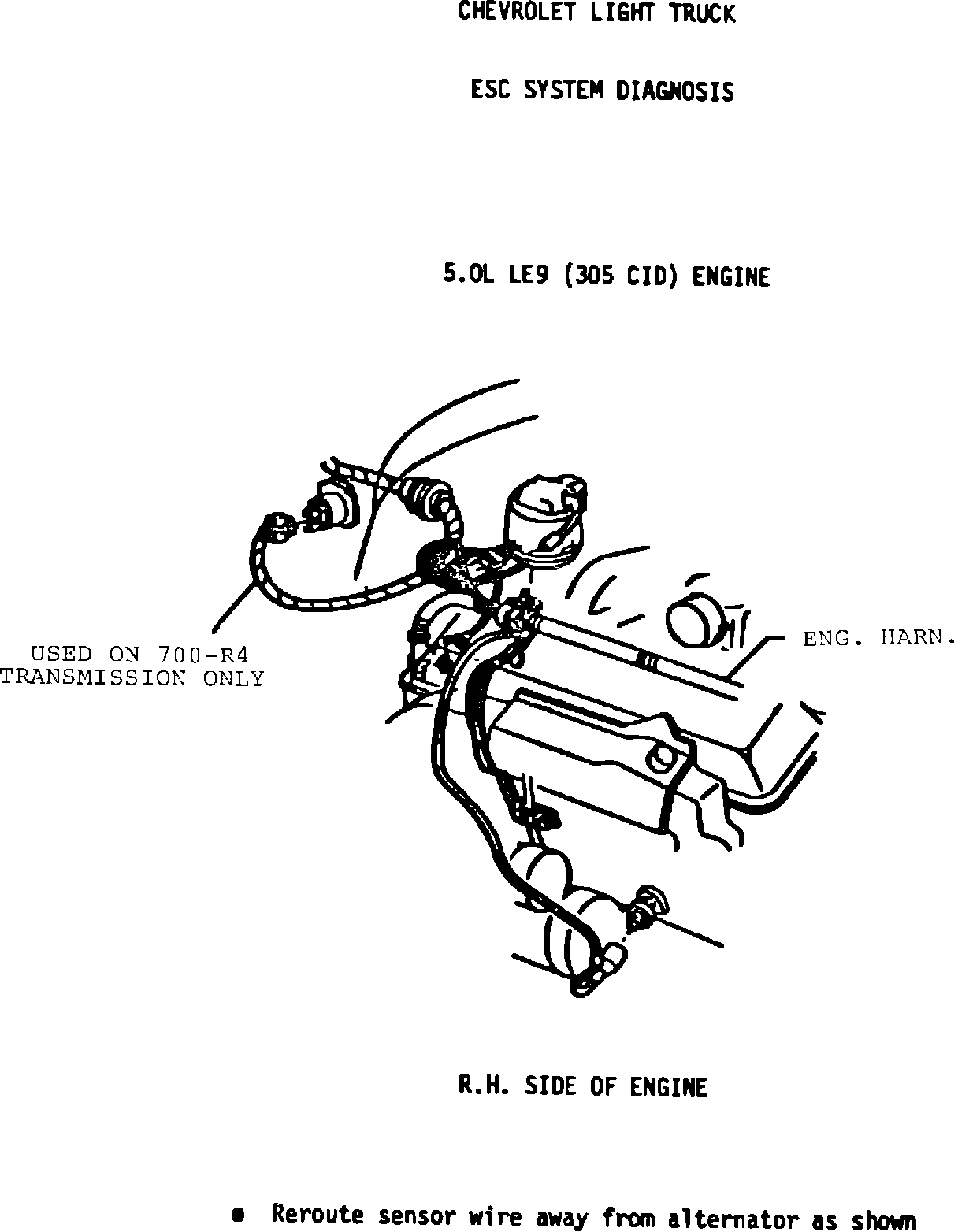 by typical carburetor, distributor, spark plug and wire problems, etc. These conditions are addressed separately in the "Engine Performance Diagnosis" section of the Light Duty Truck Service Manual. To determine if the poor performance or lack of power comment is an ESC related condition, refer to the attached "ESC System Diagnosis". If the condition is determined to be ESC related, complete this diagnosis.