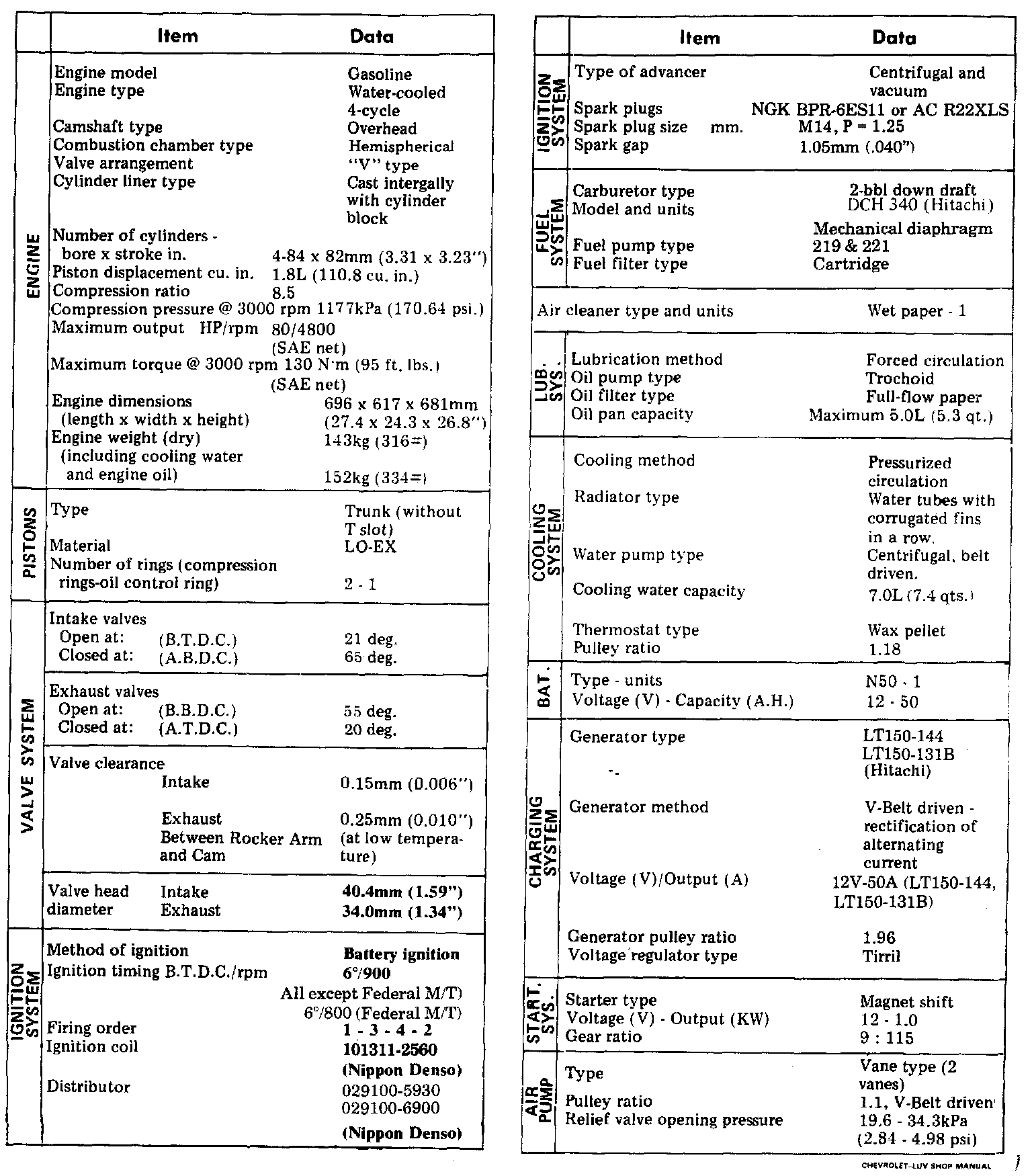 Luv 2WD L4-110 1800cc