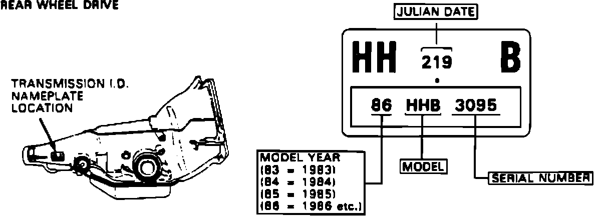 Refer to the following information and illustrations which will help explain all transmission identifications: