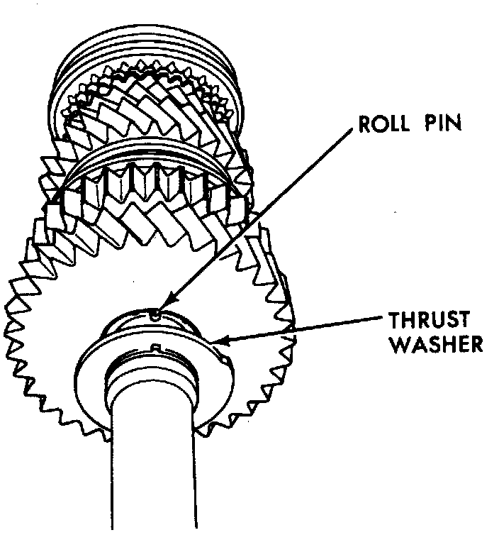 8. Install first gear thrust washer with oil groove facing first gear on mainshaft, aligning slot in washer with first gear roll pin.