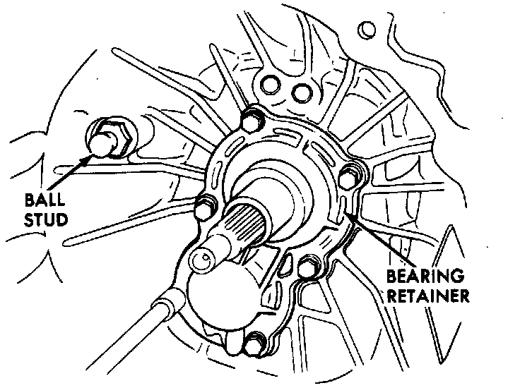 2. Drain transmission, then remove bearing retainer bolts, retainer, gasket, and ball stud.