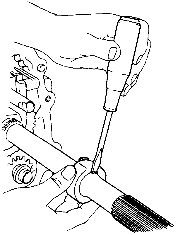 10. Using suitable tool, drive pins from 1st/2nd & 3rd/4th shift forks while supporting ends of shafts with bar or block of wood.