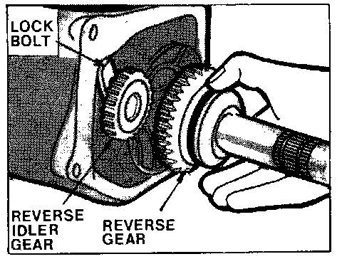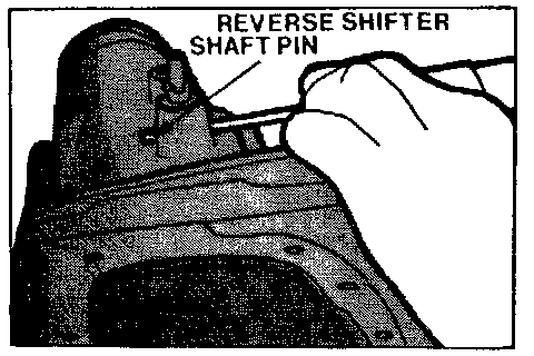 2. Remove reverse shifter lock pin, pull shifter shaft outward, disengaging lever from reverse gear.