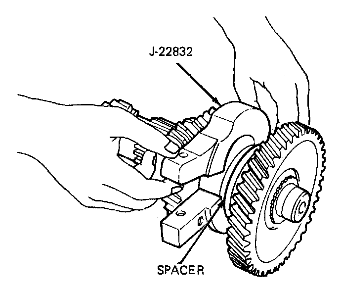 2. Position clutch countergear and spacer on shaft and press countergear onto shaft against spacer using tool J-22873. Countergear is a slip fit and pressing may not be required.