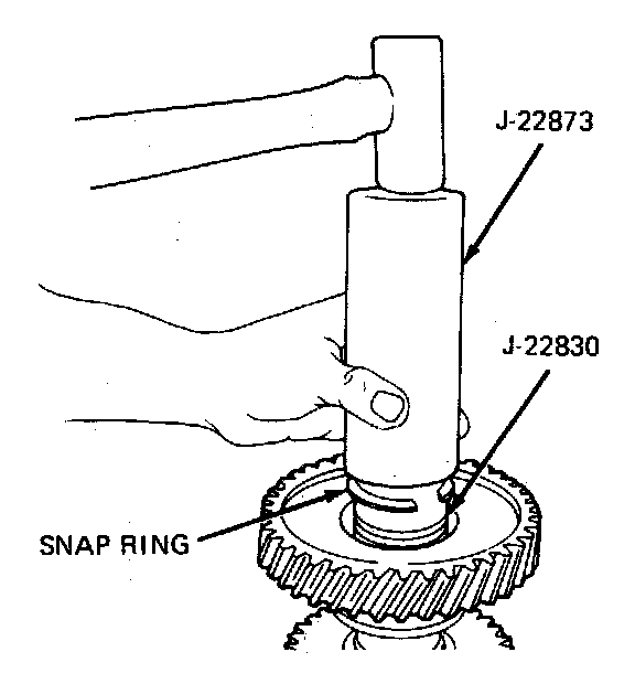 3. Install clutch countergear thrust washer and front retaining ring using tool J-22830-A and J-22873.