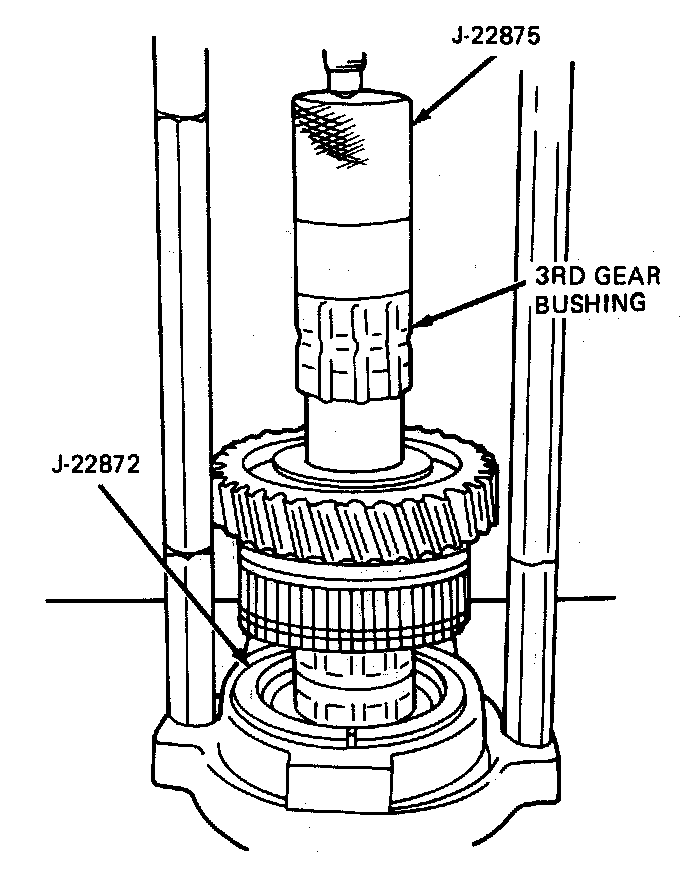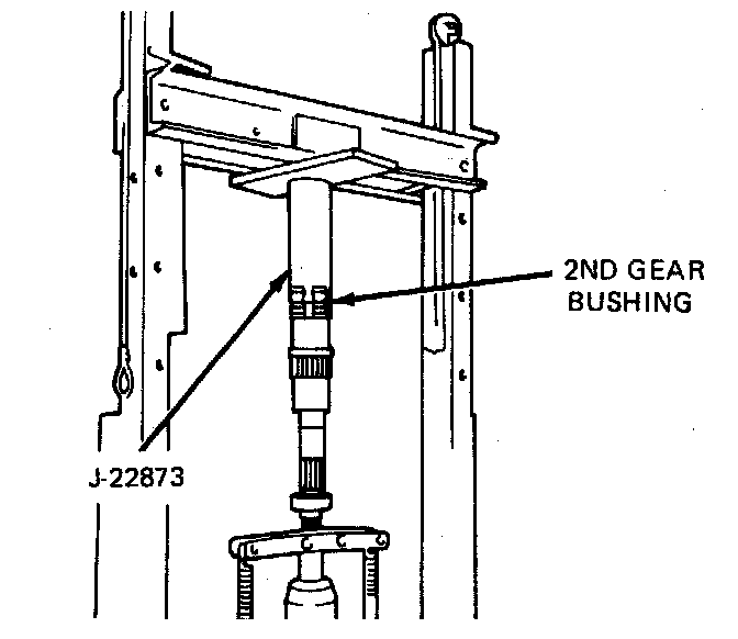 1. Using tool J-22873 press 2nd speed busing onto mainshaft until it bottoms against shoulder. Lubricate busing with E.P. oil before pressing.