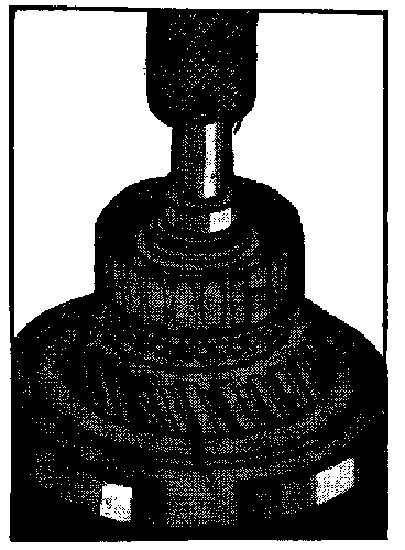 6. Install a blocker ring with clutching teeth downward over cone of gear.