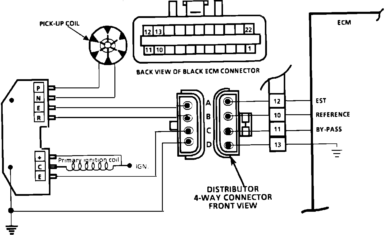 1. This step checks for a poor connection at the EST 4 wire connector as being the source of no distributor reference pulse. Check for corrosion, connector terminals not fully seated, or terminal not properly attached to the wire. The terminal must be removed from the connector and carefully inspected.