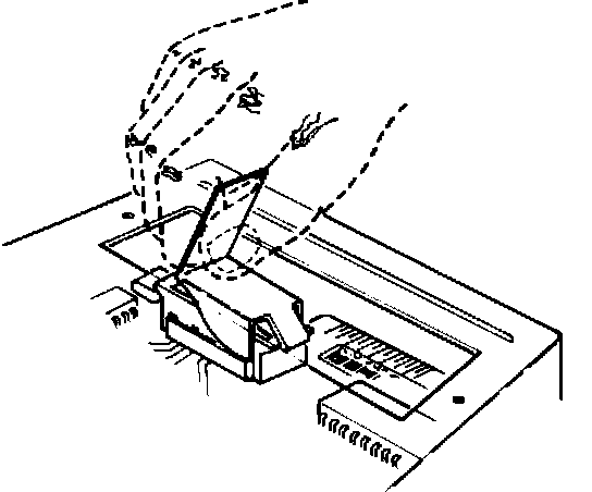 Using the rocker-type PROM removal tool, engage one end of the PROM carrier with the hook end of the tool. Press on the vertical bar end of the tool and rock the engaged end of the PROM carrier up as far as possible. Engage the opposite end of the PROM carrier in the same manner and rock this end up as far as possible. Repeat this process until the PROM carrier and PROM are free of the PROM socket. The PROM carrier with PROM in it should lift off of the PROM socket easily. PROM carrier should only be removed by using the pictured PROM removal tool. Other methods could cause damage to the PROM or PROM socket.
