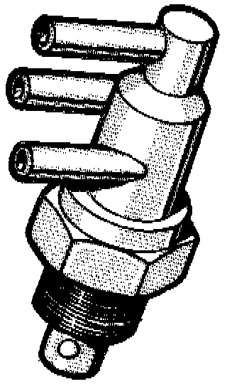 Used on some engines, the thermal vacuum switch prevents vacuum from actuating the air control and air switching valves until the engine reaches a predetermined temperature (120° F). When engine temperature reaches this calibration point, the thermal vacuum switch opens and allows vacuum to pass through it to the air control and air switching valves.