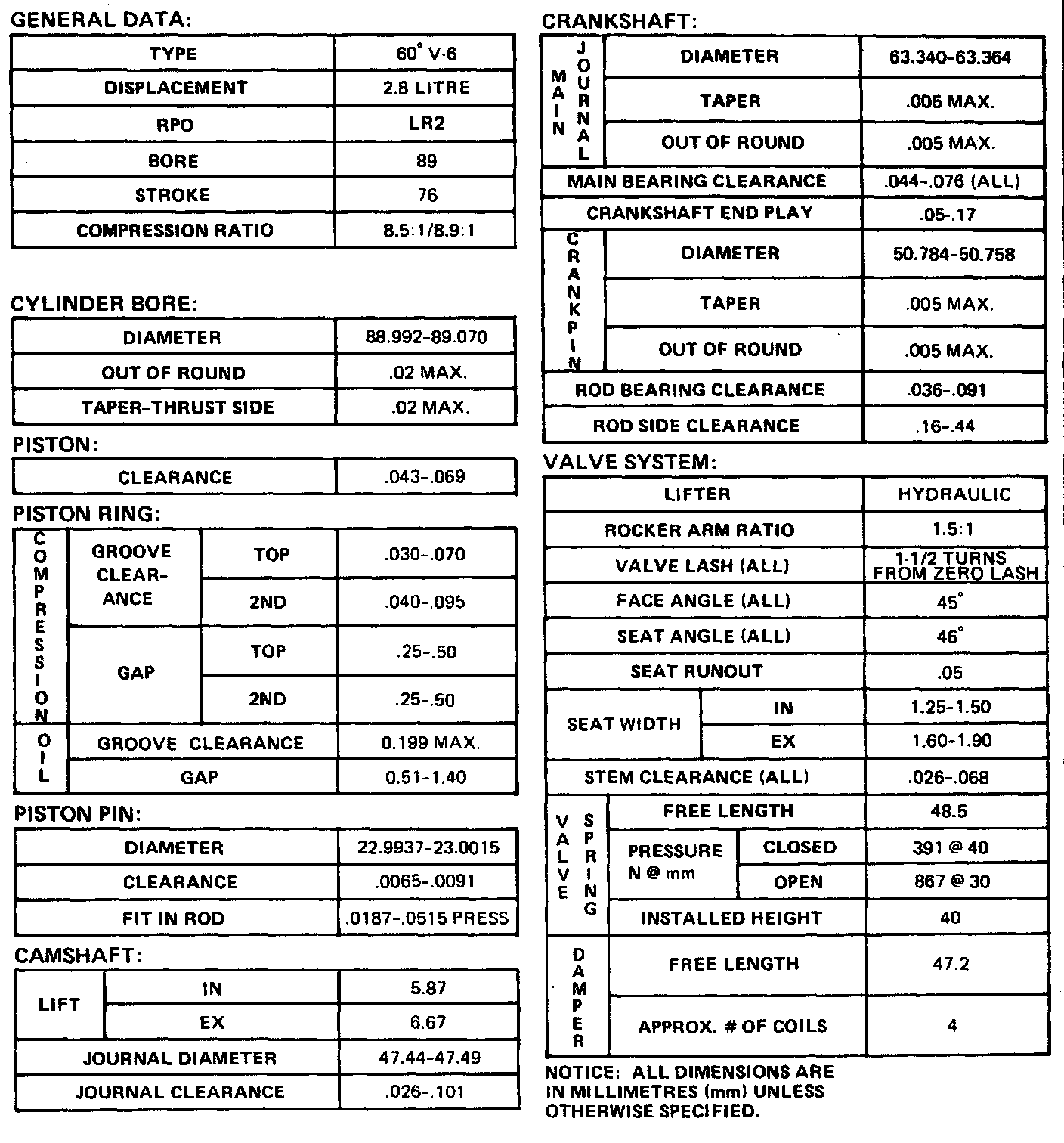 Engine Specifications: