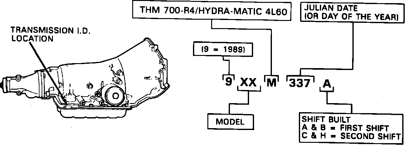 Figure 2 - THM 700-R4 / HYDRA-MATIC 4L60 Transmission Identification Information: