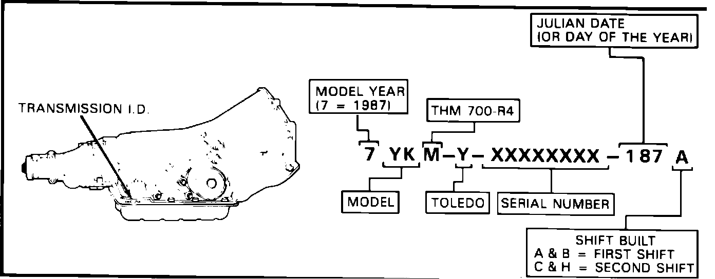 FIGURE 1 - THM 700-R4 TRANSMISSION IDENTIFICATION INFORMATION: