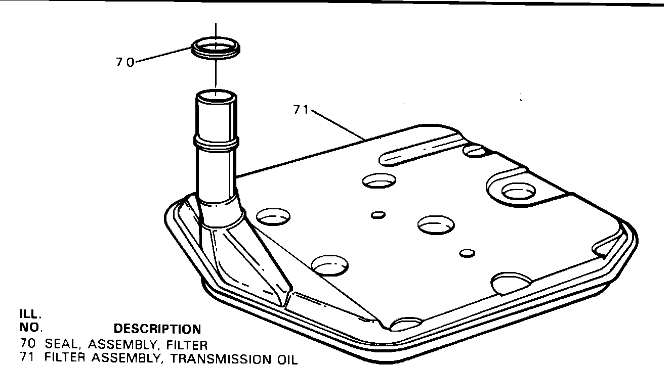 Beginning July 6, 1987 (Julian date 187) all 1987 THM 700-R4 transmissions were produced with the new design transmission filter (71) and filter seal (70), Figure No. 2.